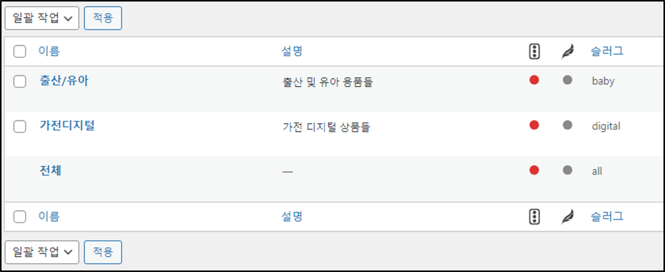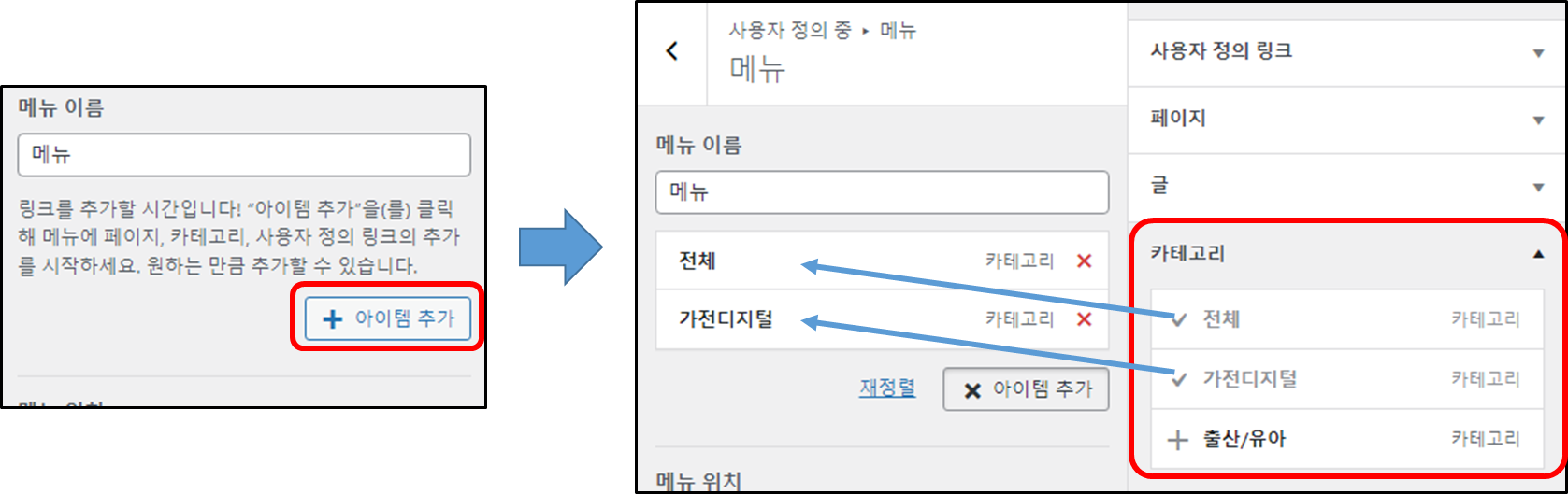 워드프레스 관리자 메뉴