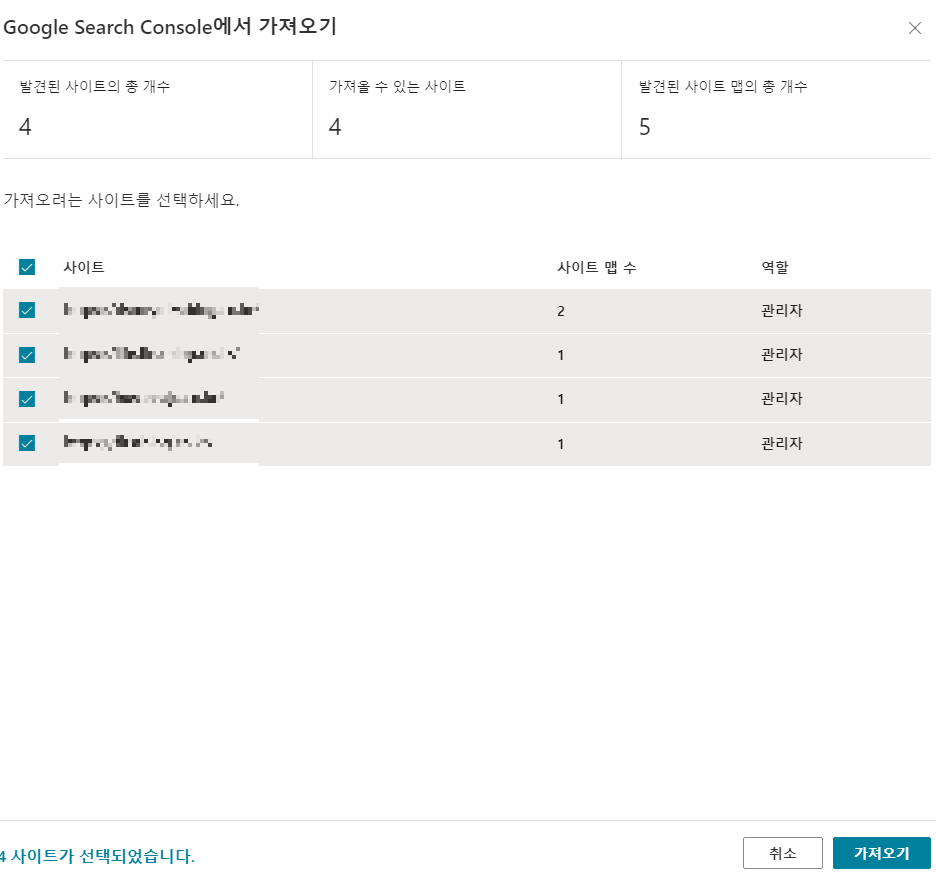 그리고 하단에 위치한 Select tables의 리스트들을일괄 선택 또는 필요한 부분만 선택 하시면 됩니다.